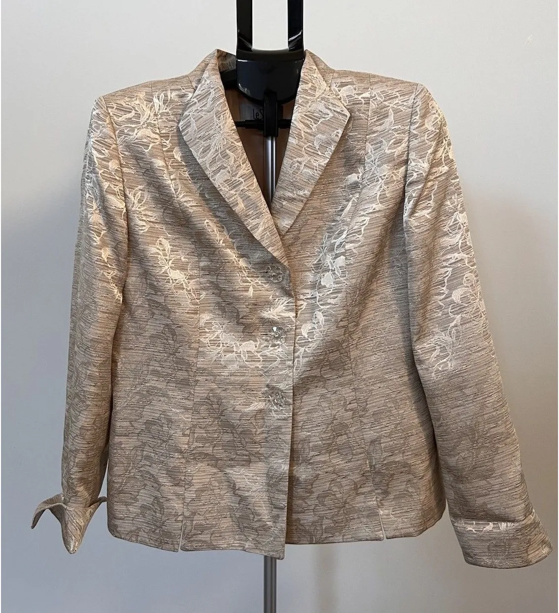 Le Suit Womens Blazer Suit Jacket Gold Champagne Brocade Floral Size 10 EUC Excellent pre-owned con... Show more