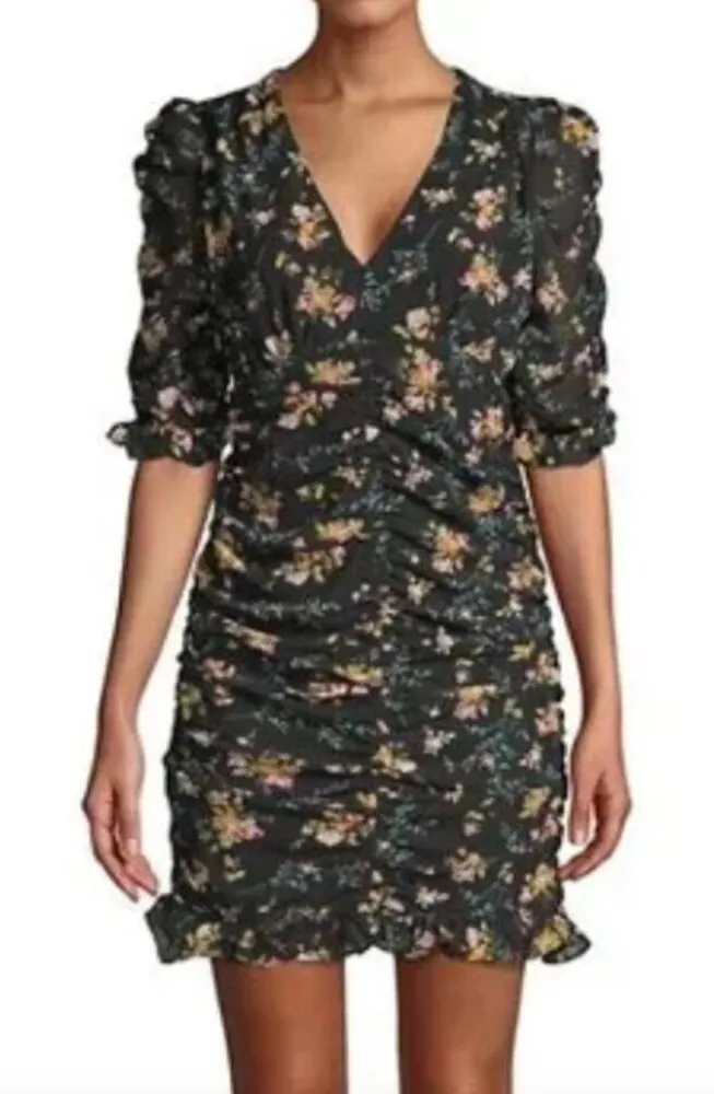 - NEW WITH TAGS Lea & Viola - Shirred Floral Mini Dress l6514 - size small sm s - black / pink / gre... Show more