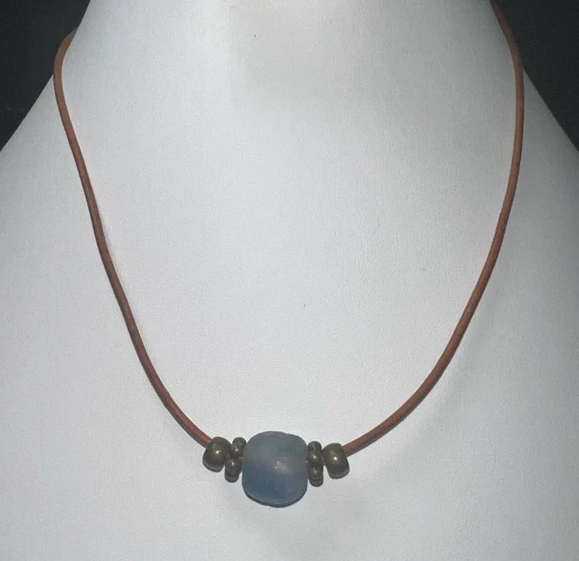 Leather and Art Glass Bead Loop Closure‎ Necklace Blue - $12 - From A Little