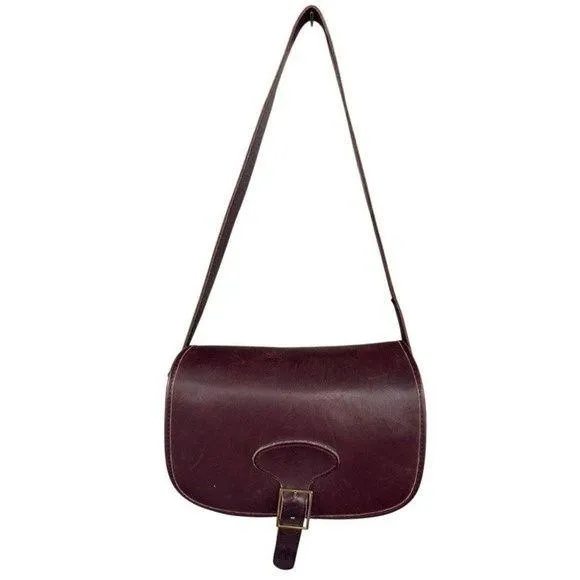 A timeless saddle bag silhouette, reimagined for the modern woman. This vintage-inspired crossbody bag features a rich maroon hue and a classic buckle flap closure, exuding understated elegance. The adjustable strap ensures a comfortable fit, while the compact interior offers just enough space for your essentials. The gold-tone hardware adds a touch of sophistication, complementing the overall design. Perfect for adding a touch of vintage charm to your everyday errands, weekend outings, or casual evenings. Exterior Material: Leather Style: Crossbody Exterior Color: Dark Red Department: Women Lining Color: Brown Handle/Strap Color: Brown Handle/Strap Material: Leather Lining Material: Suede, Leather Hardware Color: Gold Pattern: Solid Character: Classic Closure: Buckle, Snap, Magnetic Bag Width: 12 in Bag Height: 6 in Keywords: leather crossbody bag, vintage crossbody, flap bag, buckle bag, maroon bag, saddle bag, small crossbody, medium crossbody, retro bag, classic bag, everyday bag, shoulder bag, boho bag, festival bag
