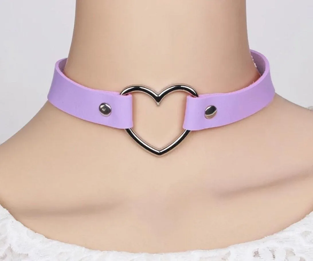 Leather Heart Choker- Black Color Purple - $16 New With Tags - From Mabroka