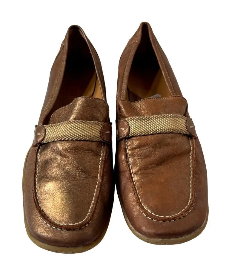 Sesto Meucci Leather Loafer Shoes Metallic Made in Italy ~ Leather upper w/ textile band at vamp, li... Show more