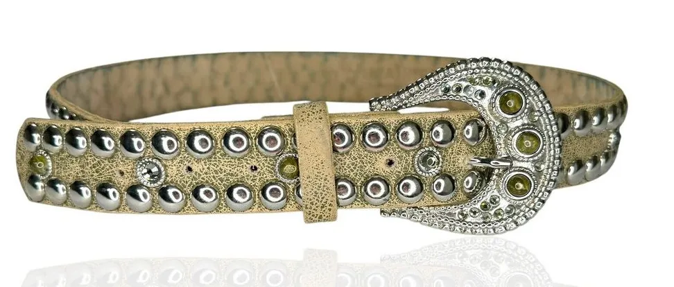 Leatherock Belt L 36 Stone Accented Large Buckle Fully Studded Vintage Western Made in USA One add... Show more