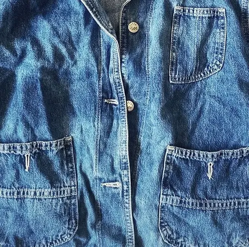 Hand-distress vintage Lees denim Jacket!! Super cute and has unique detailing all over. It had a ble... Show more