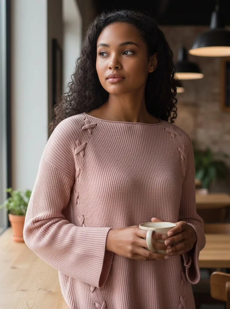Discover your new favorite cozy companion with this Lee knit sweater. Delicate lace-up detailing add... Show more