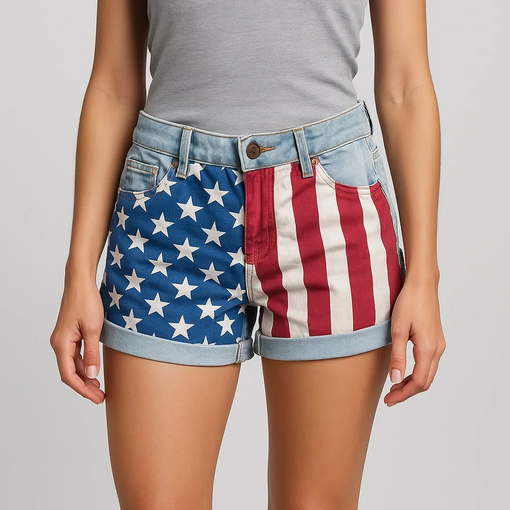 Lei Ashley Low Rise American Flag Denim Shorts – Juniors 9 Regular Patriotic Stars & Stripes Cuffed Description (SEO): Show off a bold patriotic look with these Lei Ashley “Ashley” low rise denim shorts featuring an American flag stars & stripes front panel. Light-wash jean shorts with a cuffed hem, classic 5-pocket styling, and button/zip closure—perfect for 4th of July outfits, summer festivals, concerts, and casual days. • Brand/Style: Lei Ashley (Ashley) low rise • Size: Juniors 9 Regular • Print: USA flag stars & stripes • Materials (per tag): 53% ramie / 24% cotton / 22% polyester / 1% spandex; printed fabric 97% cotton / 3% spandex Great for: patriotic denim shorts, American flag shorts, red white blue outfit, July 4th shorts, festival denim shorts, juniors jean shorts.