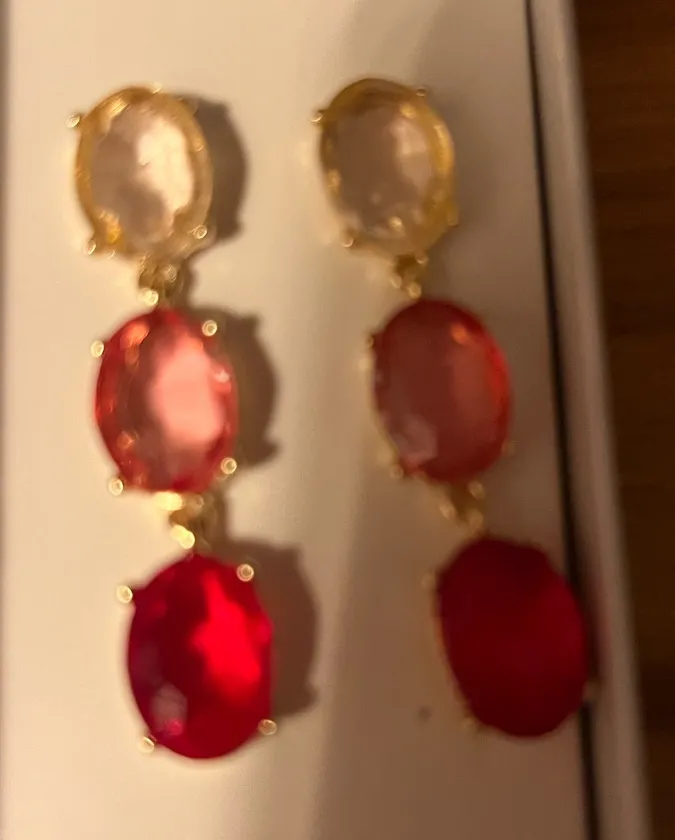 Elegant earrings featuring vibrant pink and red stones set in gold. Perfect for adding a pop of colo... Show more