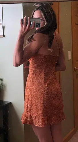 Burnt orange floral mini dress, size small, adjustable straps and side zipper. Flawless, never worn