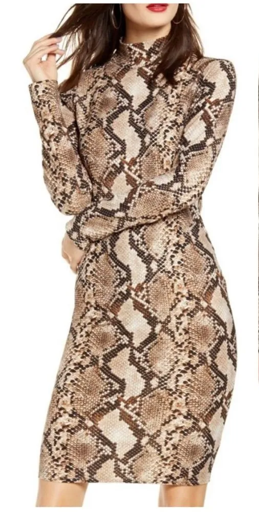 Chic and bold snakeskin print bodycon dress by Leith (Nordstrom), featuring a flattering turtleneck... Show more