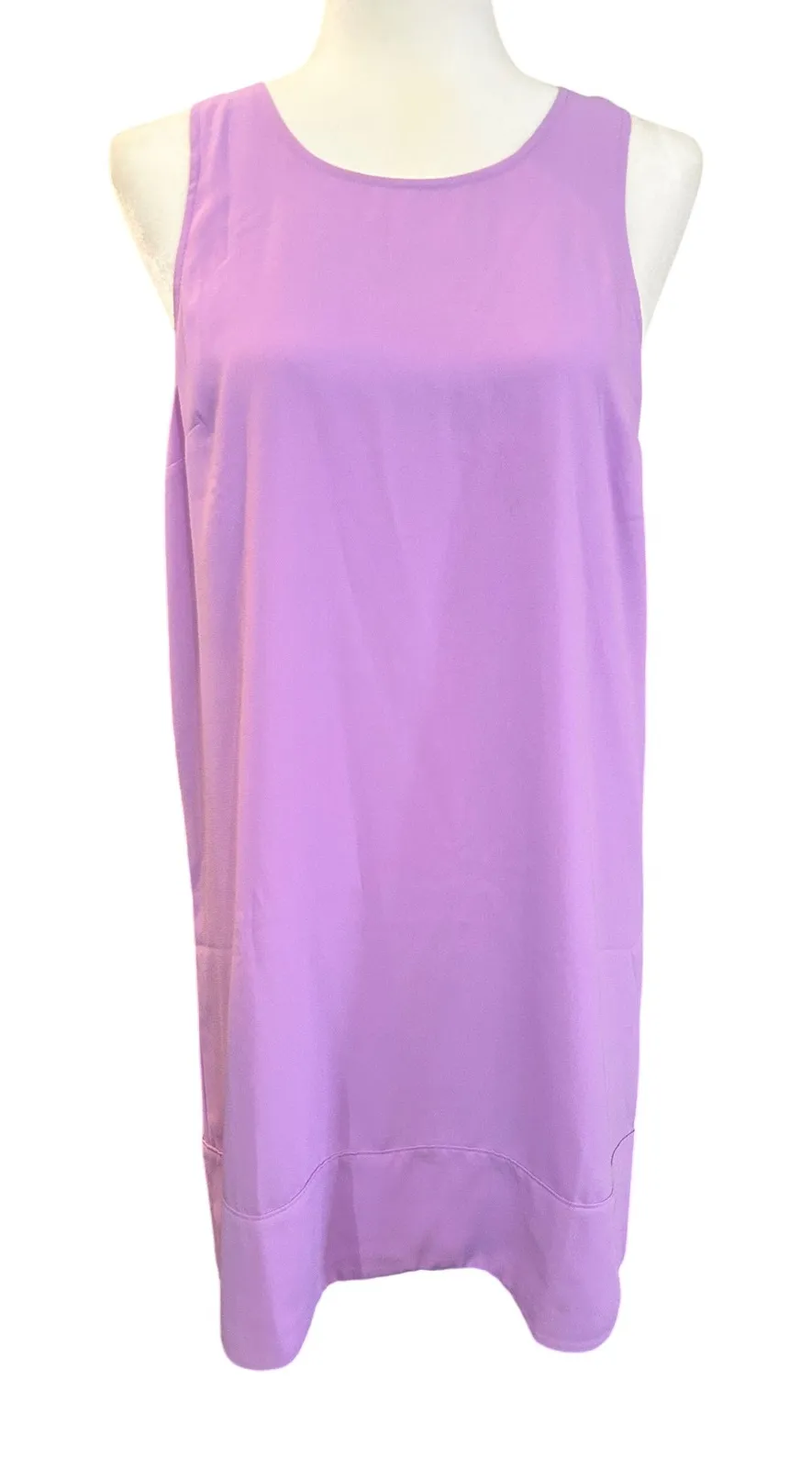 Lovely sleeveless shift dress in a soft purple hue. This comfortable and versatile piece features a... Show more