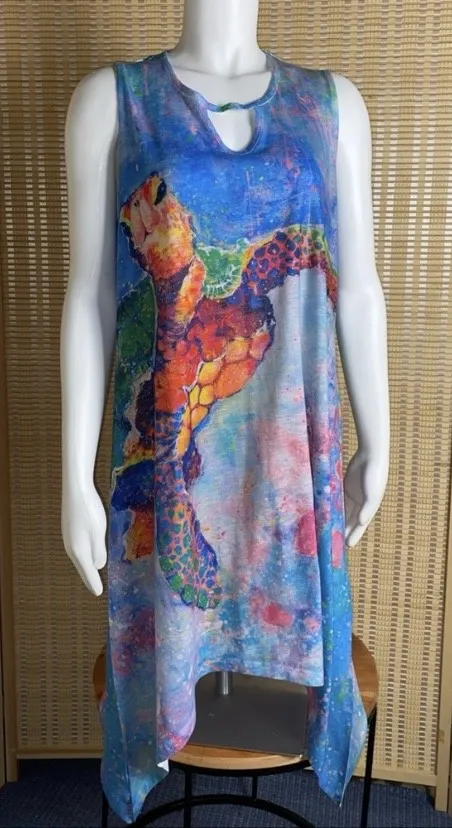Leoma Lovegrove Sea Turtle Tie Dye Cover Up Dress Size Petite Large Measurements Taken Laying Flat... Show more