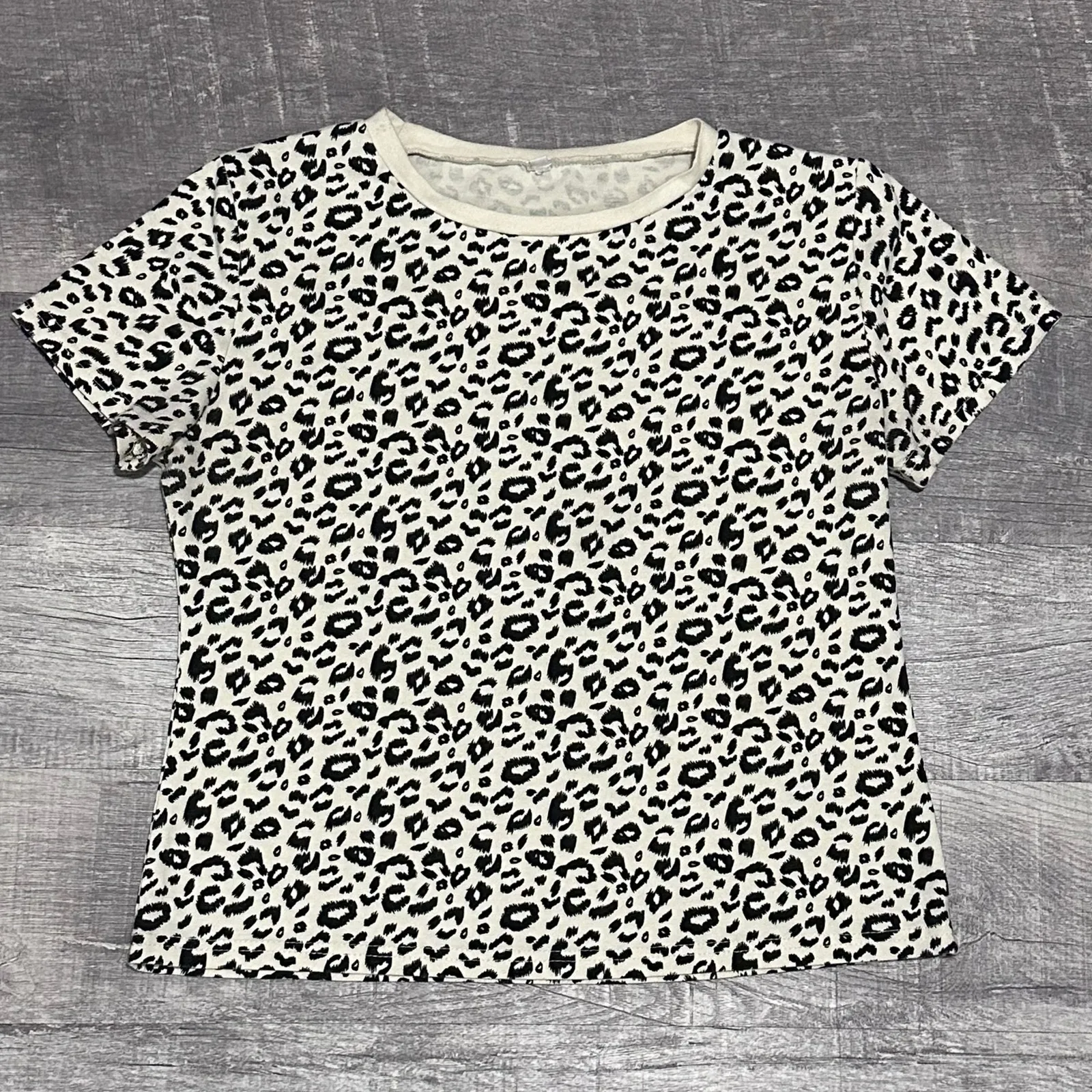 Boutique Womens Cream Black Leopard Print Crop Tee Short Sleeve Cropper Boxy A Thicker Cotton Polyester Spandex Material, Not super thick T shirt material Machine Washable SIZE: Womens Tagged Medium, could fit as a relaxed fit Small Approximate Measurements Lying Flat: Chest 18.5” Length 20” Sleeve 6.5” CONDITION: Good pre-owned, No holes, stains or visible flaws. Some light wear can be expected due to previously being worn & washed. Refer to photos. 1947-05-00