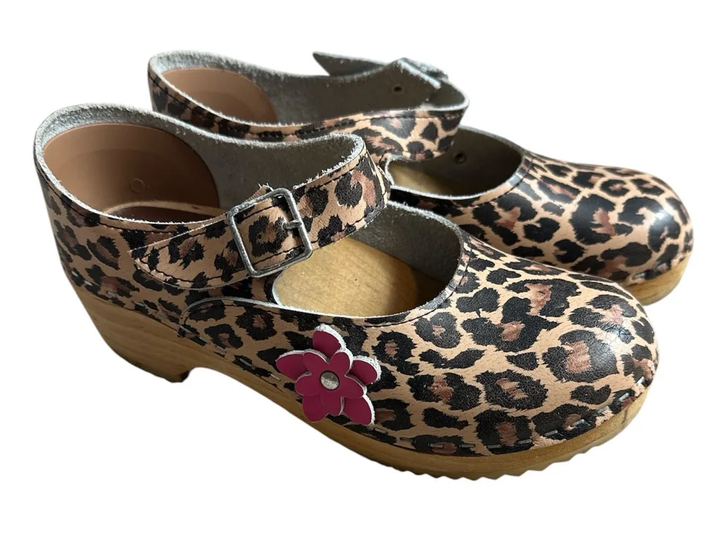 Leopard Print Women's Mules with Pink Flower Accent Brown Size 5 - $40 - From Mariah