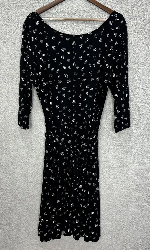 Leota Midi Dress Womens 2X Black Floral 3/4 Sleeve Belted Dainty Feminine Boho used condition with no noted flaws pit to pit 23 length 38 Happy to bulk sell and combine shipping on multiple purchases