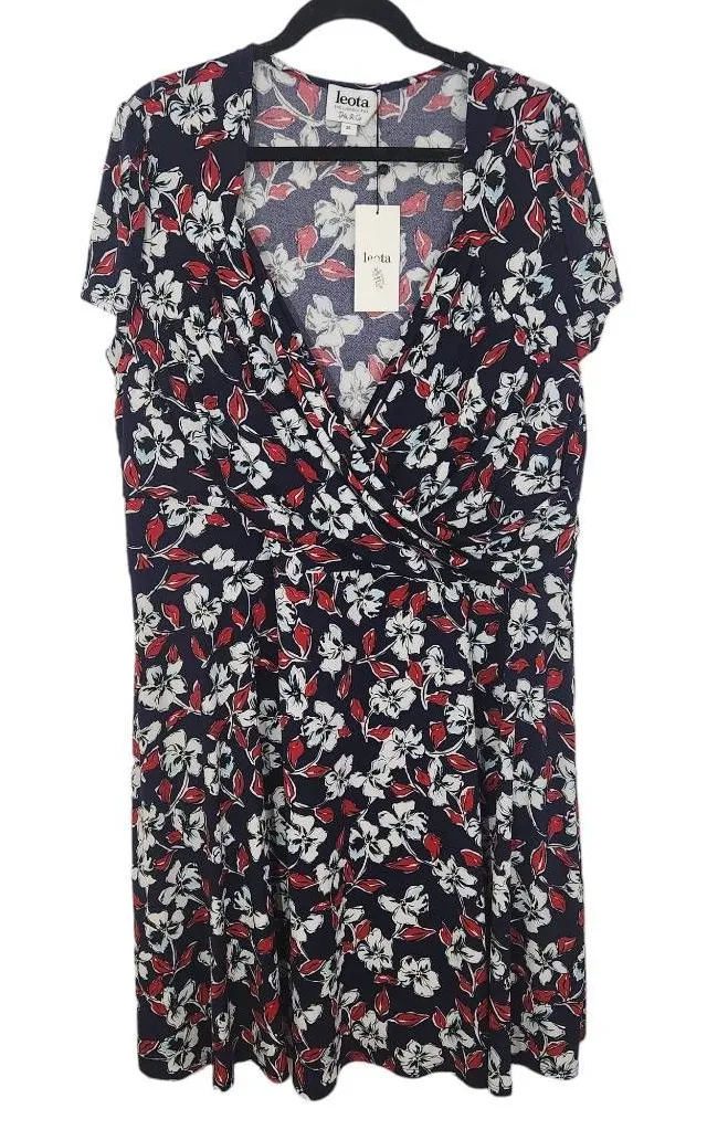 Leota for Dia & Co. faux wrap dress. Make me an offer! Neckline: Faux wrap Sleeve length: Short Size: 3L which is a 22-24 or 3X per Leota's size chart Length: Knee Color: Red, navy, and white Special features: Flattering fit Closure: Pull-on Condition: New with tags Measurements are approximate in inches and taken while lying flat. Bust 24 pit to pit Waist 22.25 Length 40 0424-102