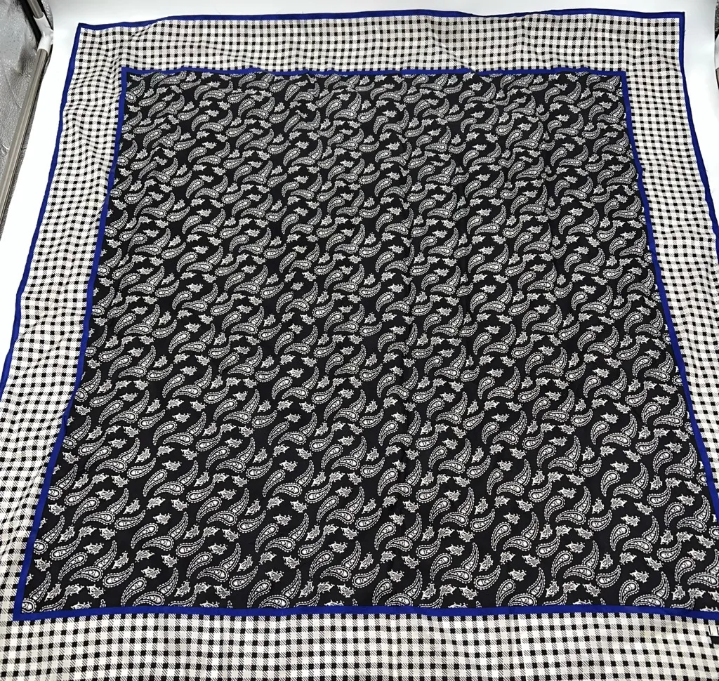 Leslie Fay 100% Silk Scarf Black, White w/Blue & CheckerBoarders Paisley Center Black - $55 New With Tags - From Jacqueline