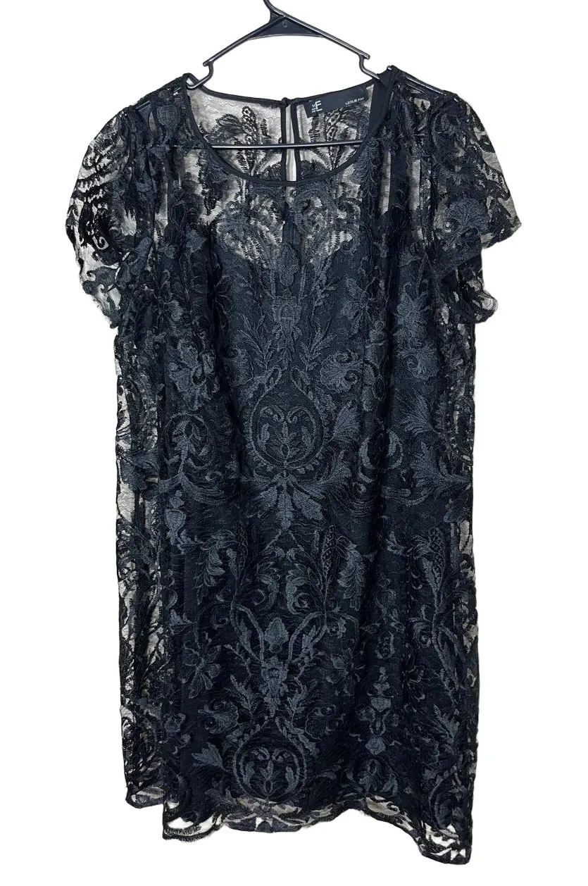 Leslie Fay Black Lace Sheer Short Sleeve Round Neck Midi Sheath Dress 14W This gorgeous Leslie Fay... Show more