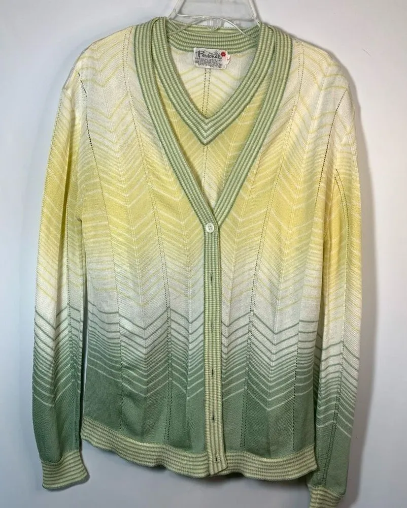 Leslie Fay Personal Women's Chevron Vest & Cardigan Bundle Green & Yellow Large Brand: Leslie Fay D... Show more
