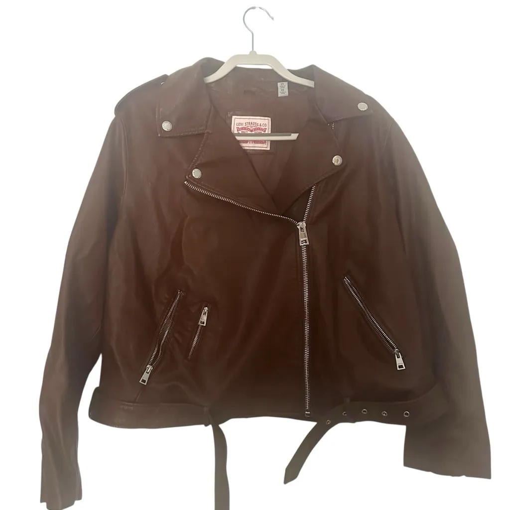 Rich chocolate faux leather jacket with sleek silver zippers. Features a removable belted waist and classic notched lapels. Perfect for a stylish, bold look. New without tags, this is from my personal collection and was never worn.