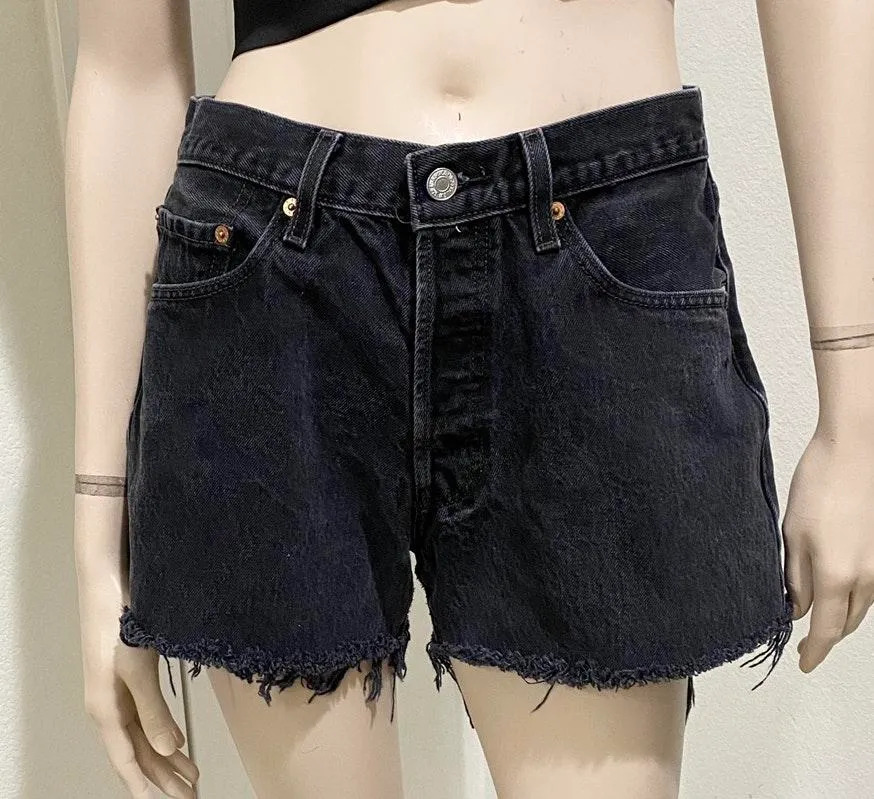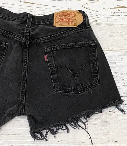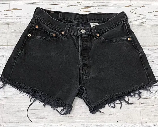 LEVI’S 501 Button Fly Black Raw Hem Denim Cut-off Shorts. Size 33 Waist shrunk a bit. Pre-owned with... Show more