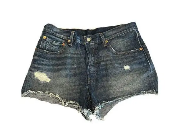 Levi's 501 bootie denim shorts Distressed raw hem button fly Big E 34" waist Blue Size undefined - $40 - From Christy