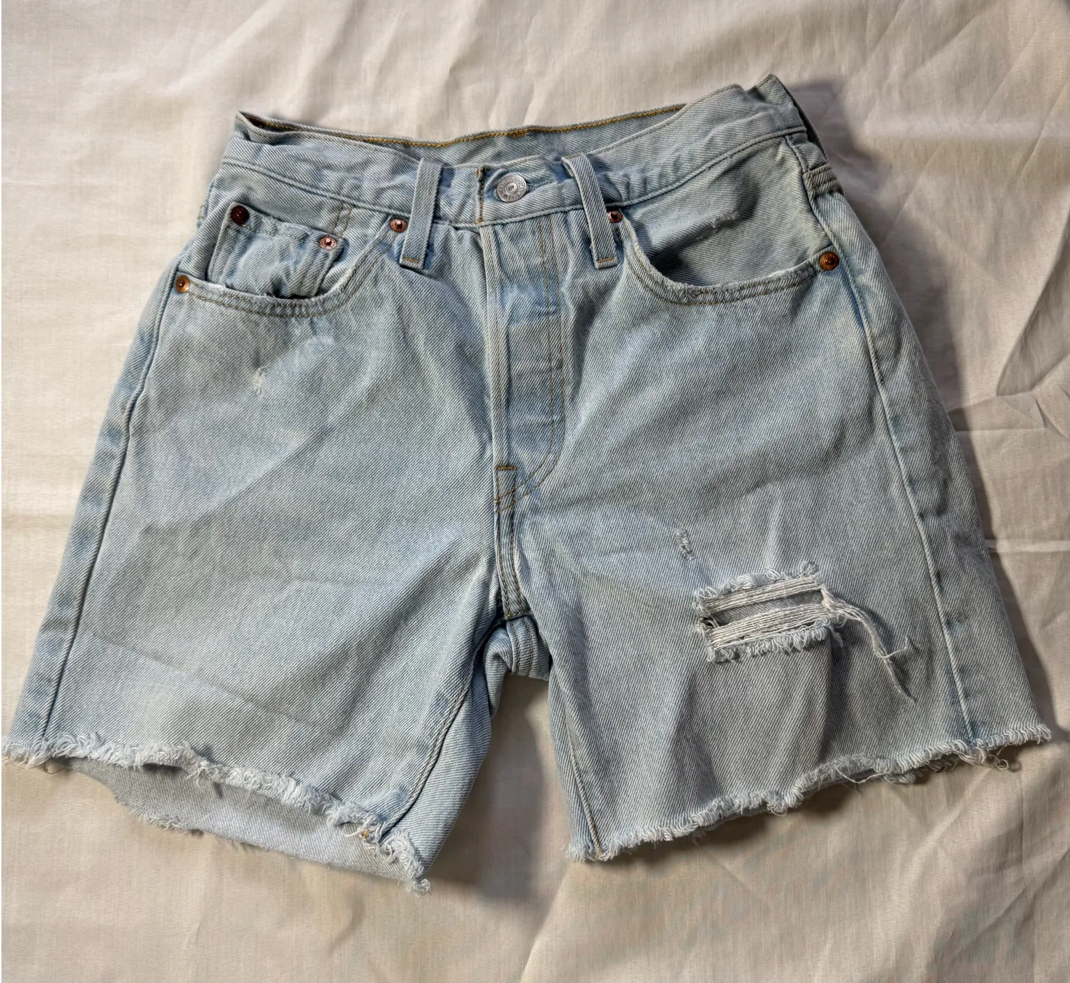 501 Levi’s shorts high rise in good condition . Size 25. Message me for any additional information :... Show more