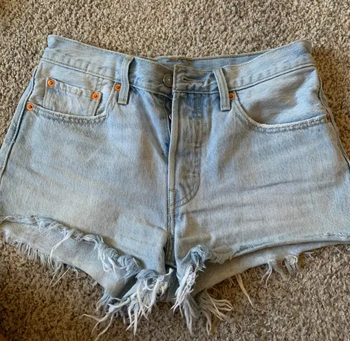 Light washed, barely worn, on the shorter side. No zipper— button fly. Only flaw is that the bottom... Show more
