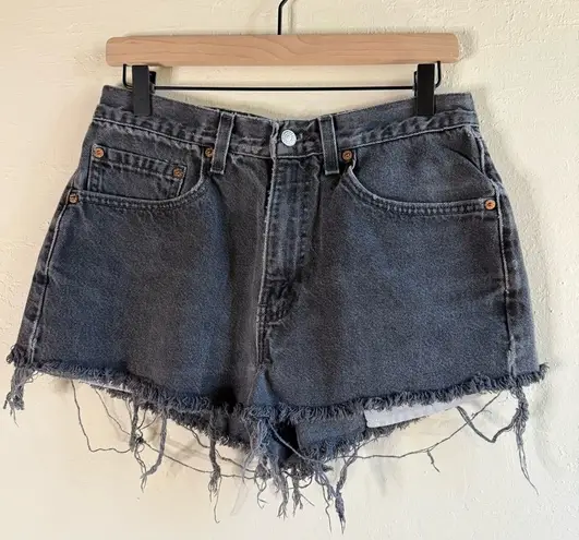 Levi's 550 High Rise Shortie Distressed BlackGray Denim Shorts Waist Size 34 Front zip 5 pockets I... Show more