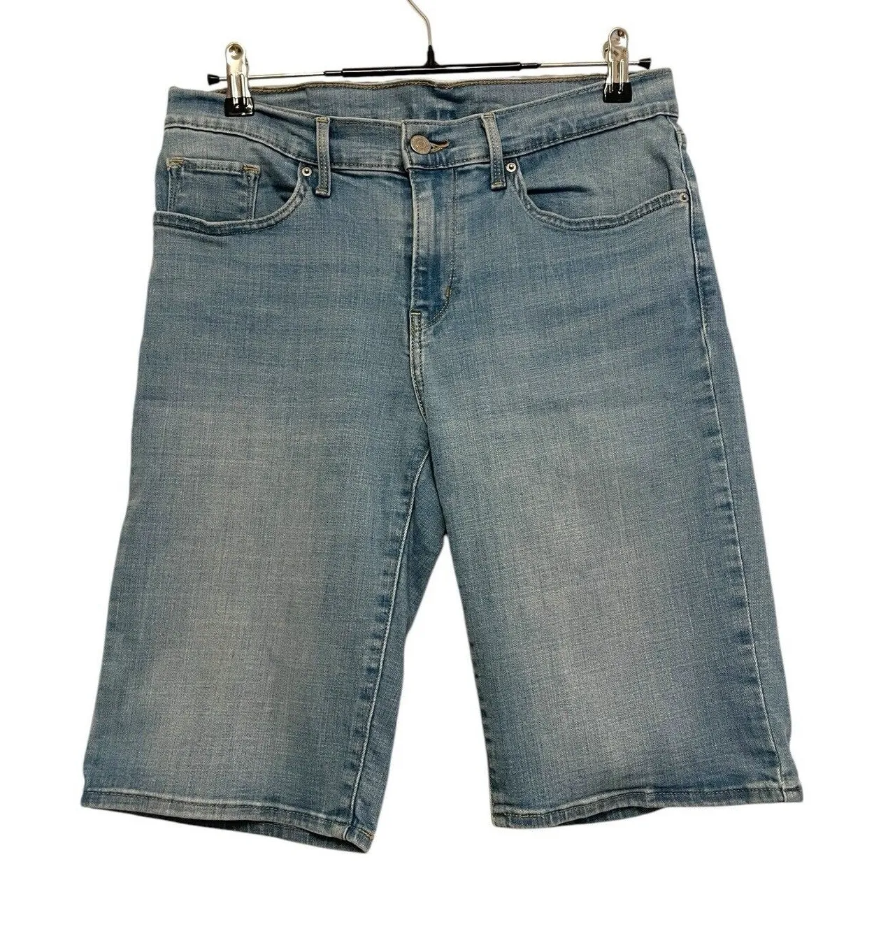 Gently pre-owned Levi's Classic Bermuda jean shorts in light blue. Denim material, lightweight, cott... Show more