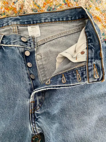 Levi 501 style Jeans Labeled as a size 32 but fits like a 27W I used a seam ripper to unroll the b... Show more
