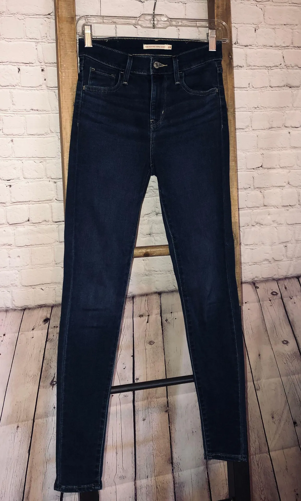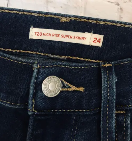 Dark blue high waisted super skinny jeans. Very soft and stretchy material, with pockets and zipper.... Show more