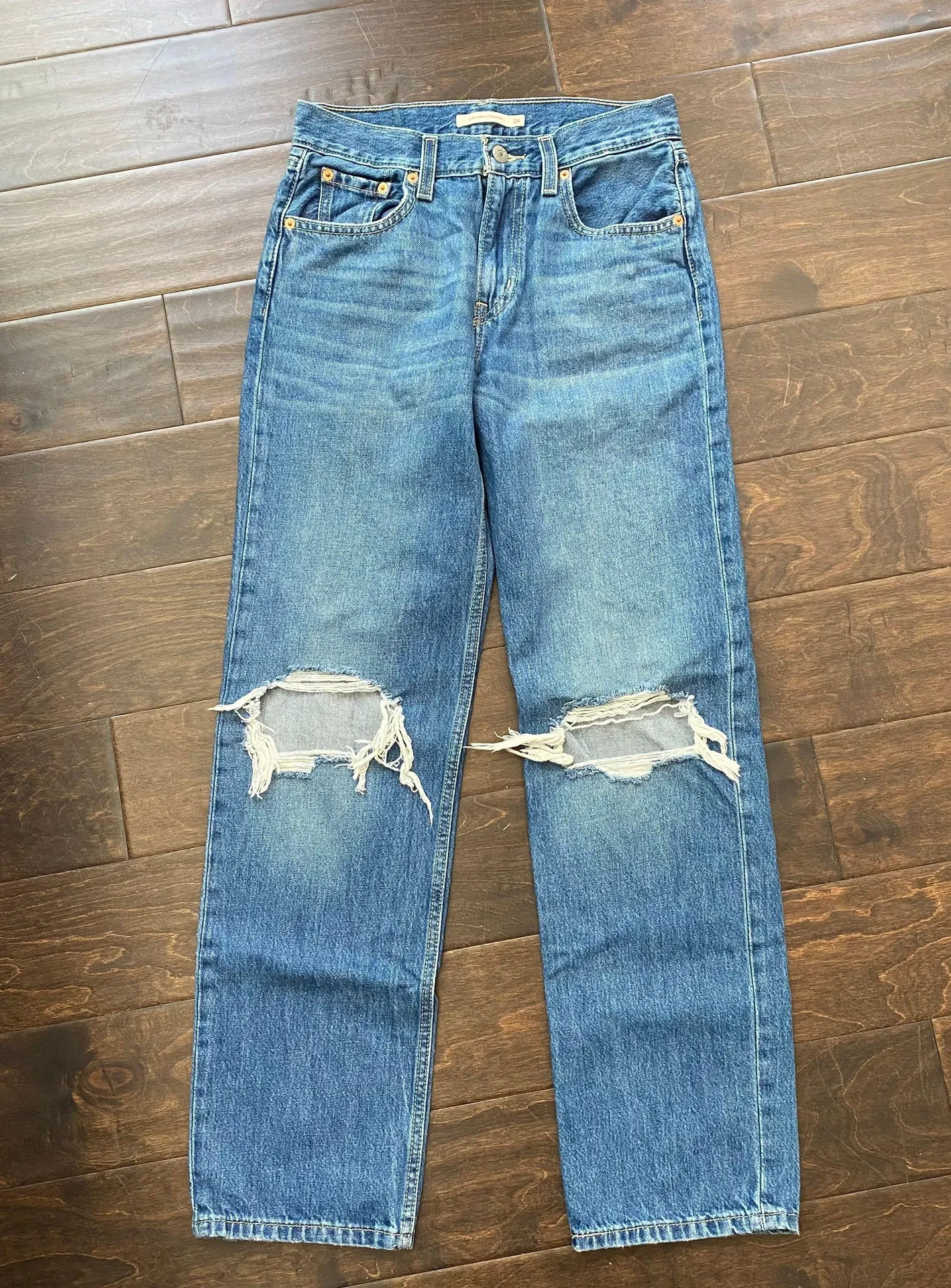 These pair of Levi’s are the low pro straights. They are low to mid rise fit depending on how you wa... Show more