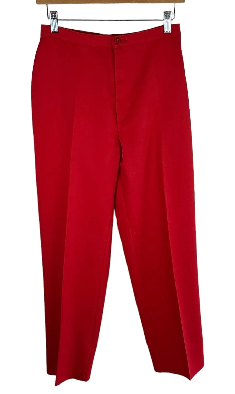 Excellent preowned vintage condition. Red straight leg high rise dress pants trousers. No pockets. Z... Show more