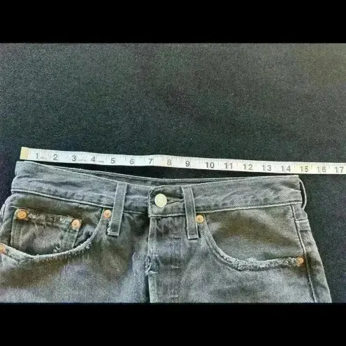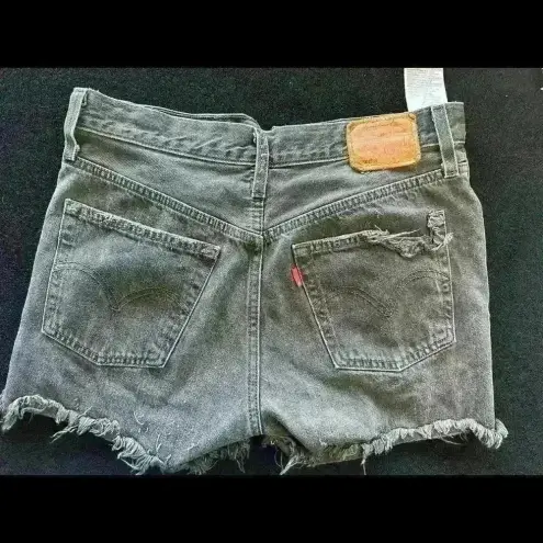 Description: Classic Levi’s 501 black distressed denim shorts with a vintage vibe! 🖤 Features a hig... Show more
