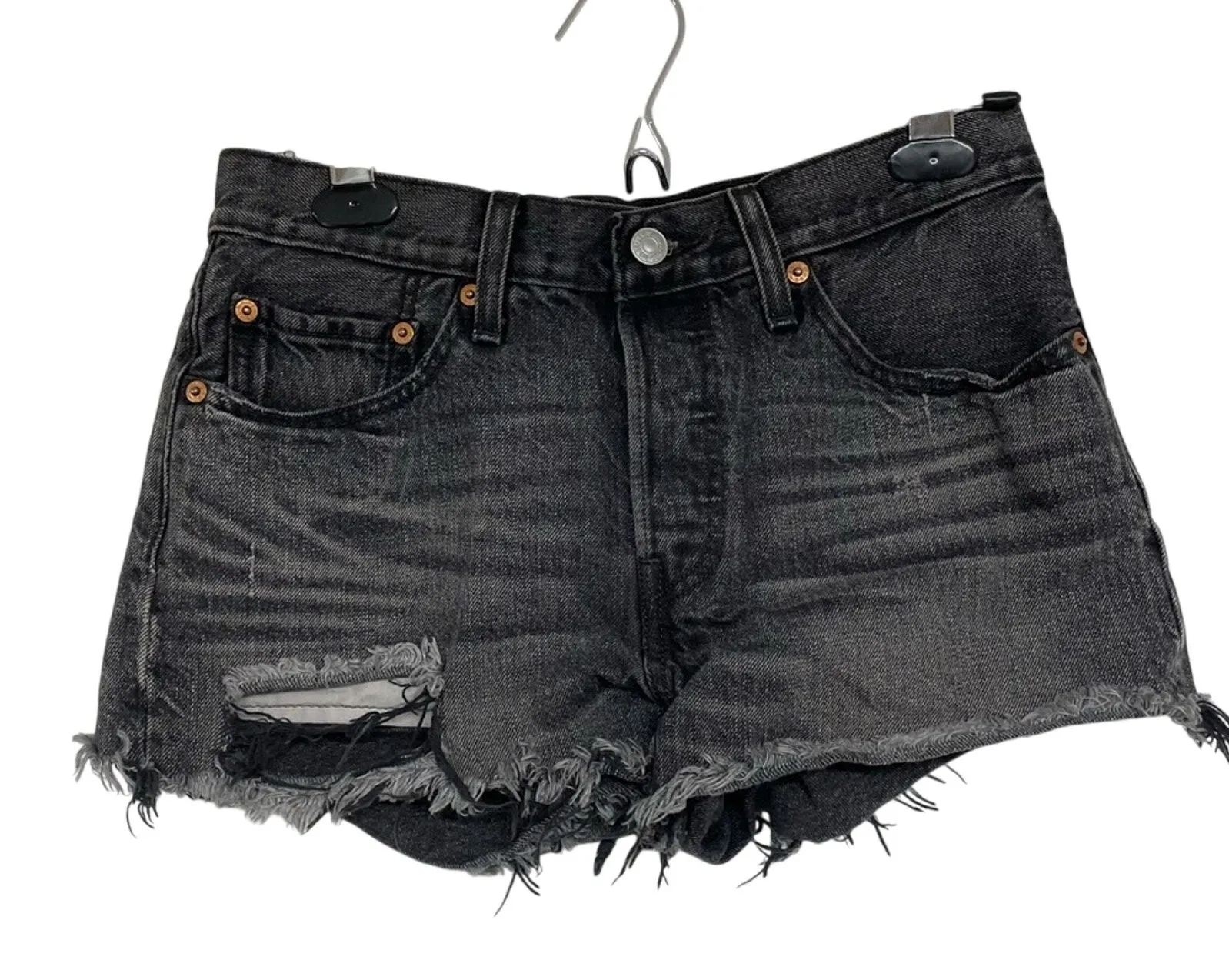 Levi’s 501 Grey Denim Distressed Cut Off Jean Shorts 26 Preowned in excellent condition Quick Shippi... Show more