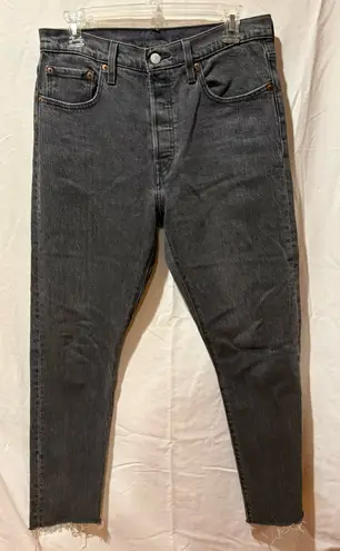 These dark Grey women’s 501 Levi’s offer a high waist, button fly, straight leg, raw hem which makes... Show more