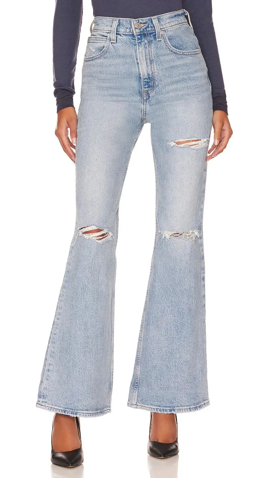 "You and I" light wash - intentionally faded denim Flared style Distressed High rise Cotton, elastan... Show more