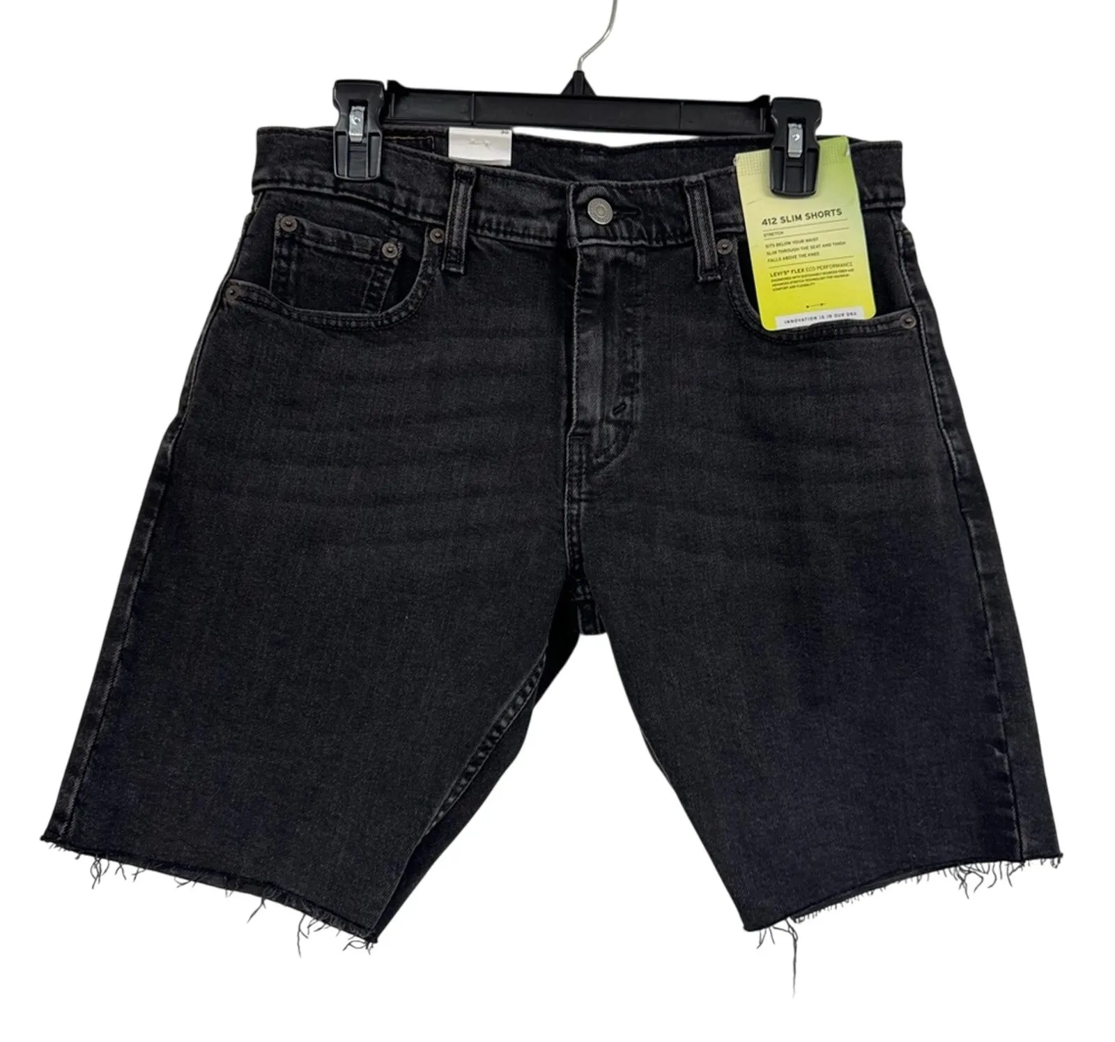 Levi’s Black 412 Slim Shorts Denim Cut Off Bermuda Jean Shorts Womens 30 Preowned in excellent condi... Show more