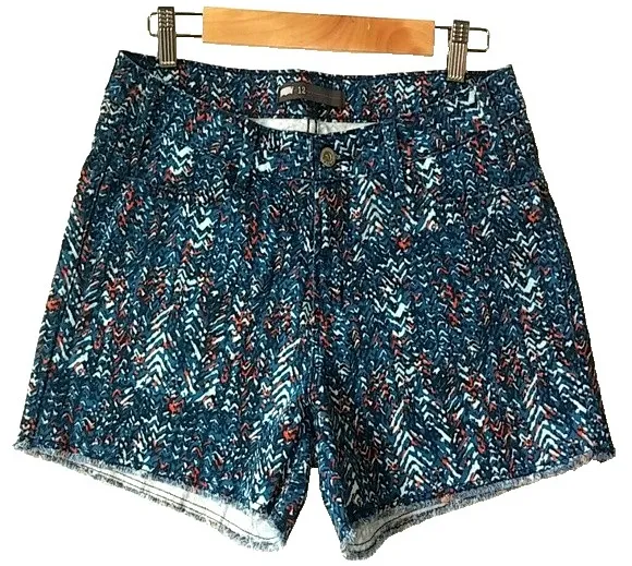 Levis Denim Jean Shorts Womens 12 L Fray Hem Cut Offs Festival Boho Print 4" Inseam Cotton Stretch B... Show more