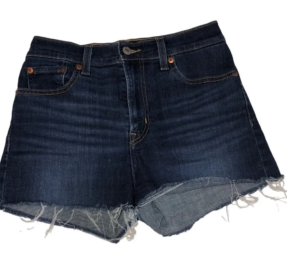 Levis High Rise Denim Shorts Size 26 Blue Stretch Frayed Hem Boho Festival Dark Wash These Levi's... Show more