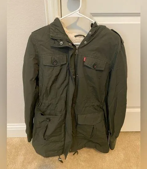 Levis Jacket Womens Medium Green Faux Fur Hooded Sherpa Lined Nylon Parka Ladies New without tag! S... Show more