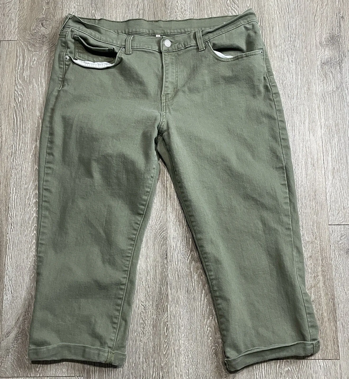 The product is a pair of Levi's women's jeans in size 33, featuring a solid green color and made fro... Show more
