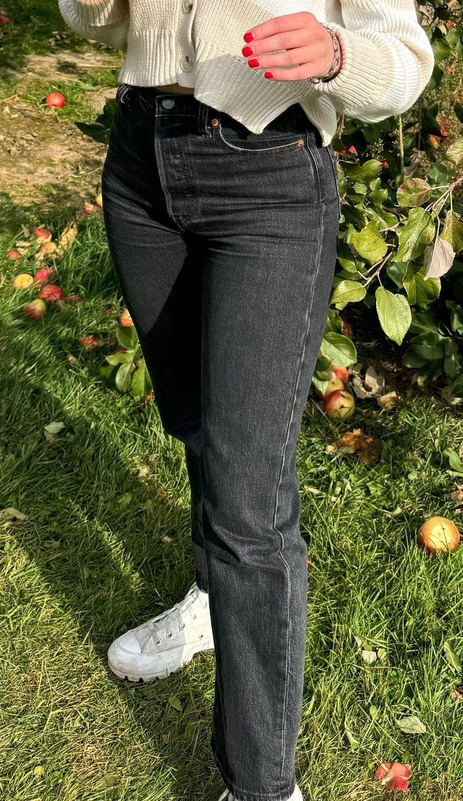 Ribcage straight ankle black Levi jeans. 25 x 27. No holes in the jeans. Worn but in very good condi... Show more