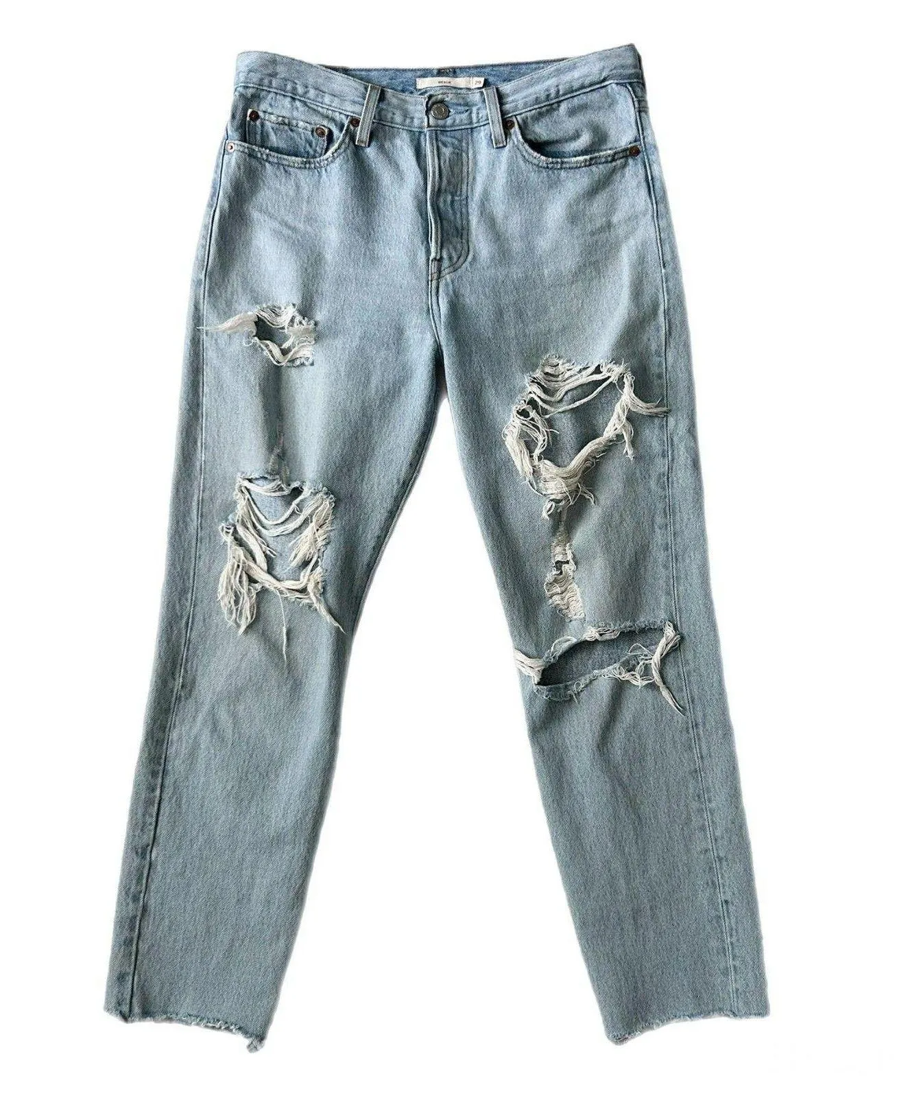 Levi’s Premium Wedgie Fit Icon High Rise Ripped Straight Jeans in Light Wash. Good used condition wi... Show more