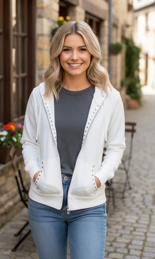 • Era: True Vintage 90s / Y2K aesthetic. • Embellishment: Features studs lining the zipper, hood, an... Show more