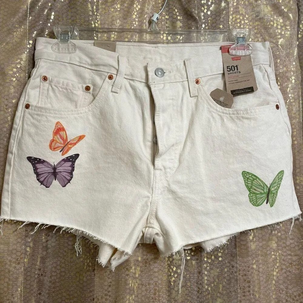 Levi’s Women's 501 Ivory Give Me Butterflies Hi-Rise Denim Shorts, 30 NWT Brand new with tags. Thes... Show more