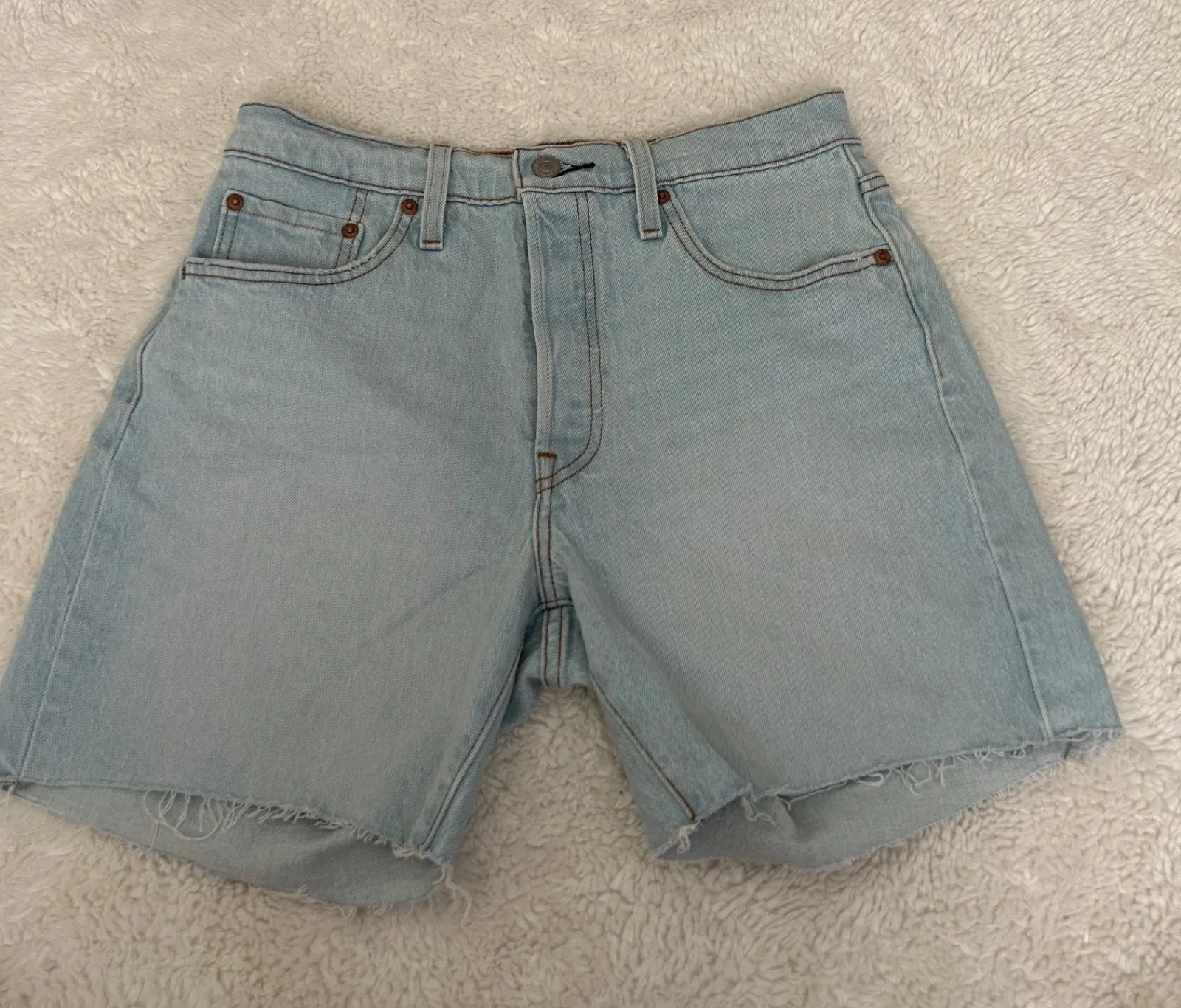 The Levi’s Women’s Premium High Rise Baggy Shorts in a light wash, size 28, offer a casual and styli... Show more