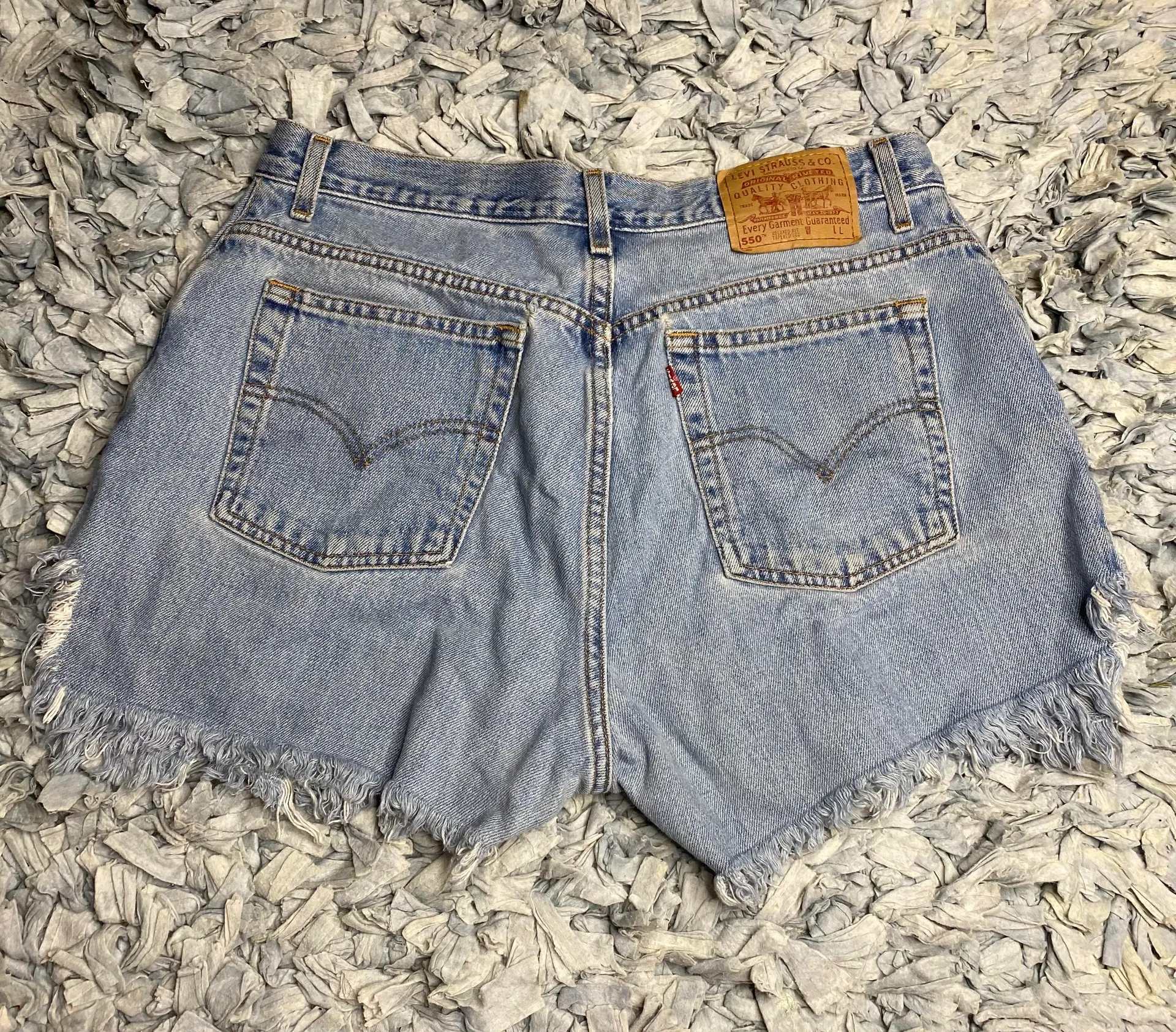 an essential to have in your closet! classic light wash levi’s shorts with the tan tag in the back.... Show more