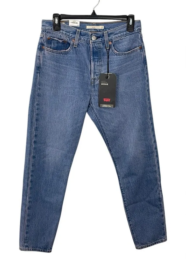 NWT Levi’s Premium Wedgie Jeans Medium Blue Wash with Pink Tint Size 27 Approx measurements: 14.5”... Show more