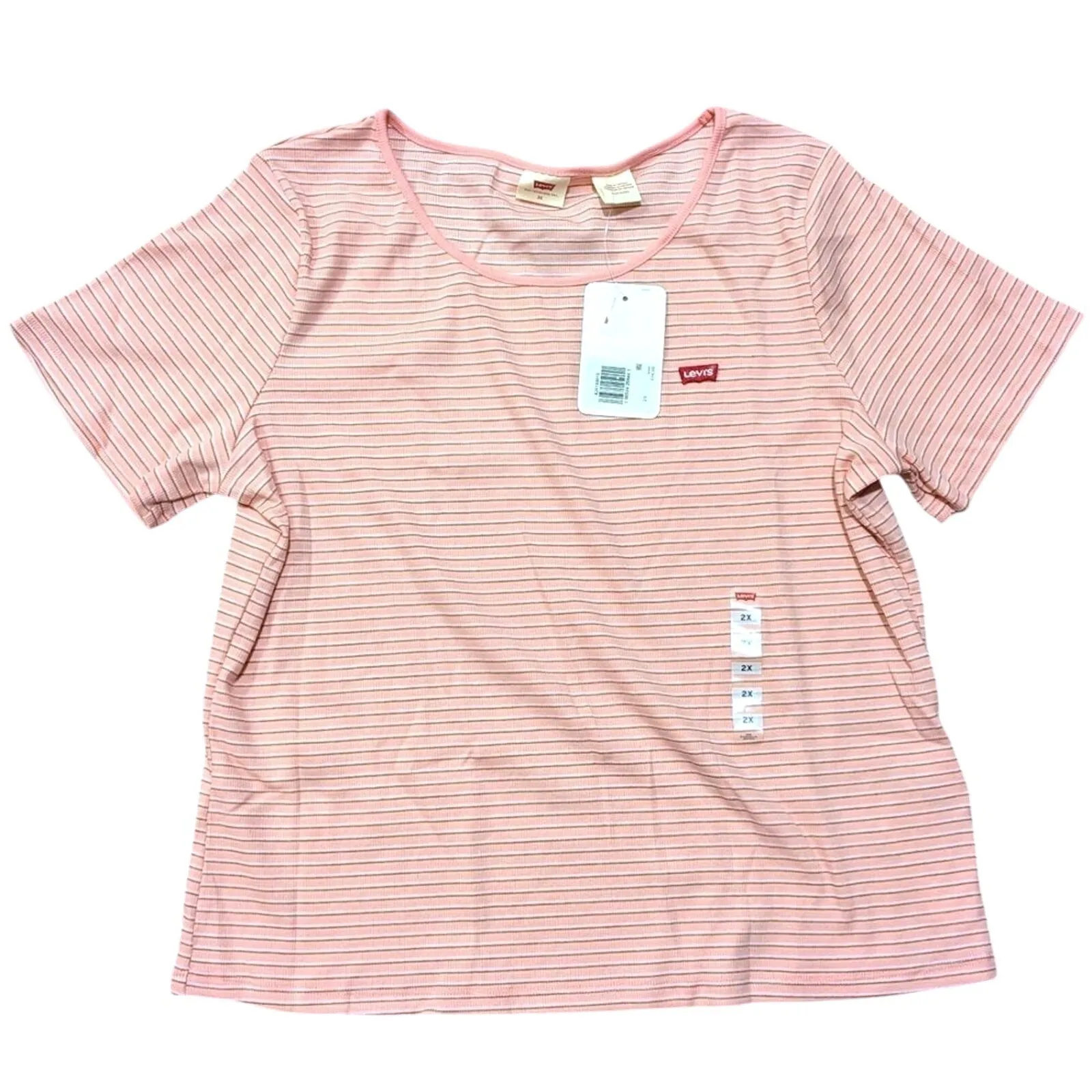 Brand new with tag! Levi's Plus size 2X ribbed baby doll tee, pink/white stripes, Short sleeved, fit... Show more